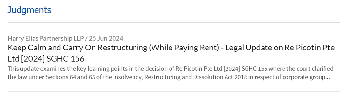 In this legal update, we examine the Brief Remarks given by the Honourable Justice Aedit Abdullah in Re Picotin Pte Ltd [2024] SGHC 156 where His Honour clarified the law under Sections 64 and 65 of the Insolvency, Restructuring and Dissolution Act 2018 (“IRDA”) in respect of corporate group restructuring (involving a holding company and its multiple subsidiaries) and the Court’s approach in balancing the proprietary interests of landlords.